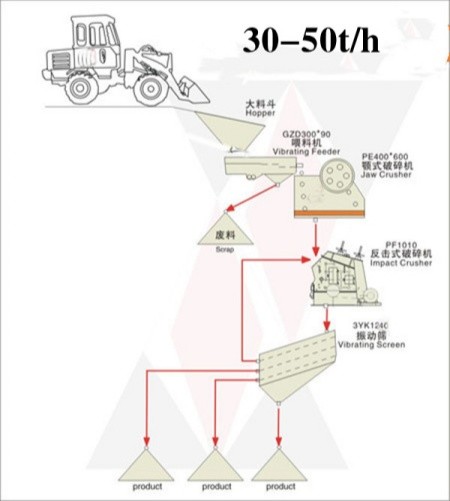 1. Cette ligne de concassage de pierres est principalement utilisée pour les minerais et pierres de dureté moyenne à élevée, tels que le granit, le minerai de fer, le marbre, etc. Sa capacité est de 20 à 30 tonnes par heure, la granulométrie finale des granulats pouvant être de 0 à 10 mm, de 10 à 20 mm, de 20 à 30 mm ou de 30 à 40 mm (modifiable).