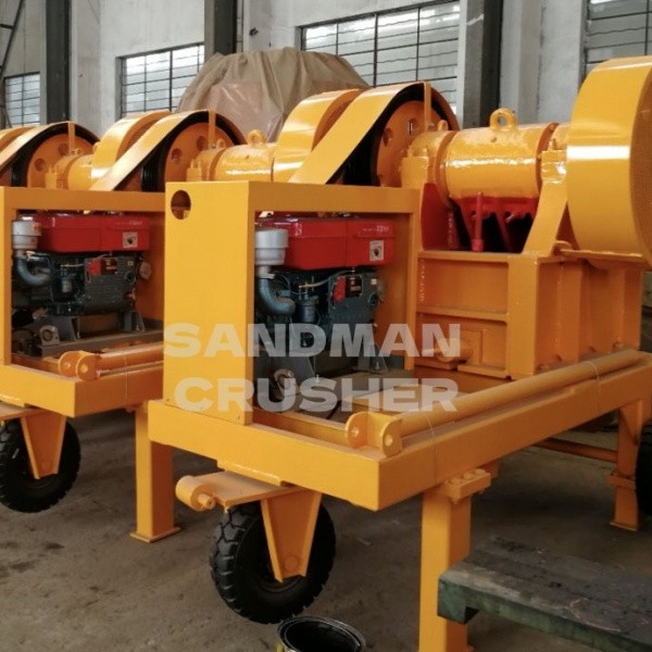 1. Le concasseur à mâchoires diesel DM2540 est utilisé pour le concassage de pierres de béton. Il comprend un concasseur à mâchoires, un moteur diesel et un support mobile.