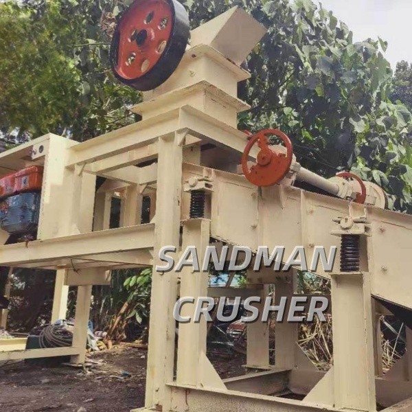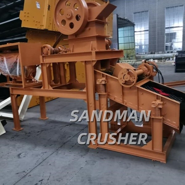 1. La mini-concasseur-cribleuse diesel DS1525 est conçue pour le concassage de pierres de béton. Elle comprend un concasseur à mâchoires, un petit crible vibrant, une petite trémie et un moteur diesel.